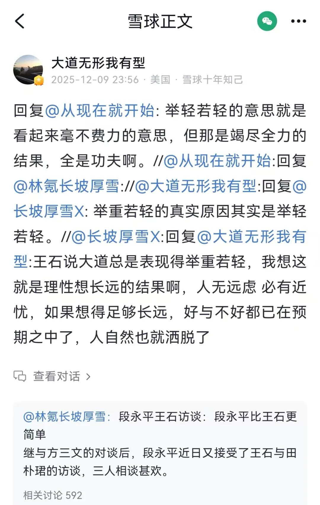 值得一提的是,近日在雪球上,在与网友互动中,段永平透露了自己的成本。12月8日,有网友表示:“今天买到了跟大道(段永平雪球名称)成本很接近的茅台。”段永平回应道:“140?”此后又有网友表示:“应该是大道最近一次加仓成本。”段永平表示认同。